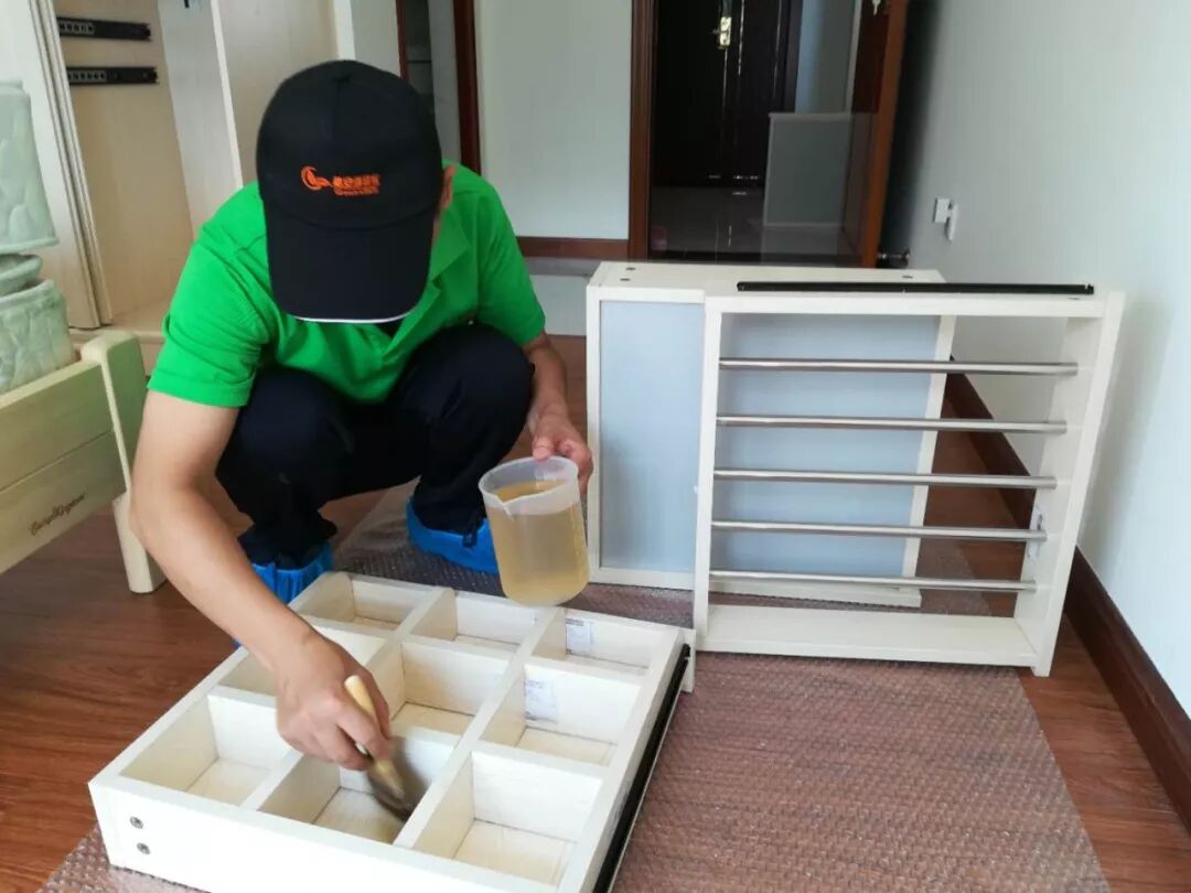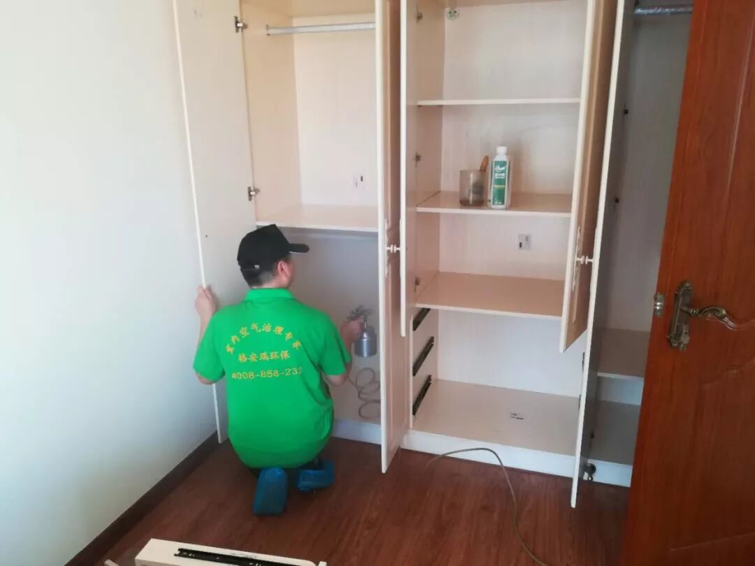 室内污染主要来源于家具、装修材料等,格安瑞工程师有针对性的进行治理。本次治理的重点是室内的桌椅、抽屉、柜子、地板、墙面等。室内的抽屉、柜子较多,这也是造成室内甲醛污染的主要污染源,必须进行根源治理,才能快速有效的清除。